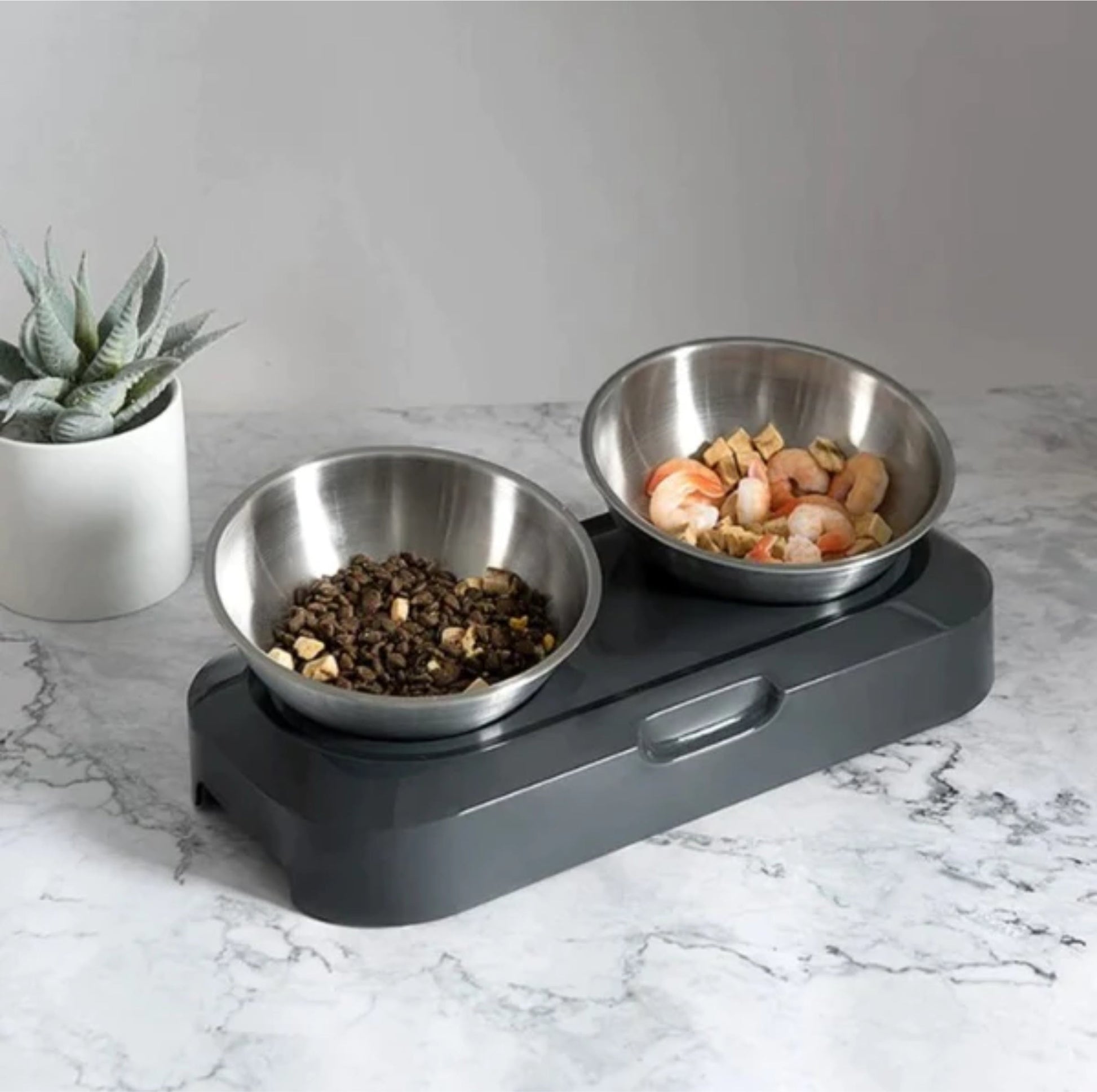 Voici une gamelle permettant une bonne position, qui ne glisse pas, qui se nettoie facilement et avec un design sympa !